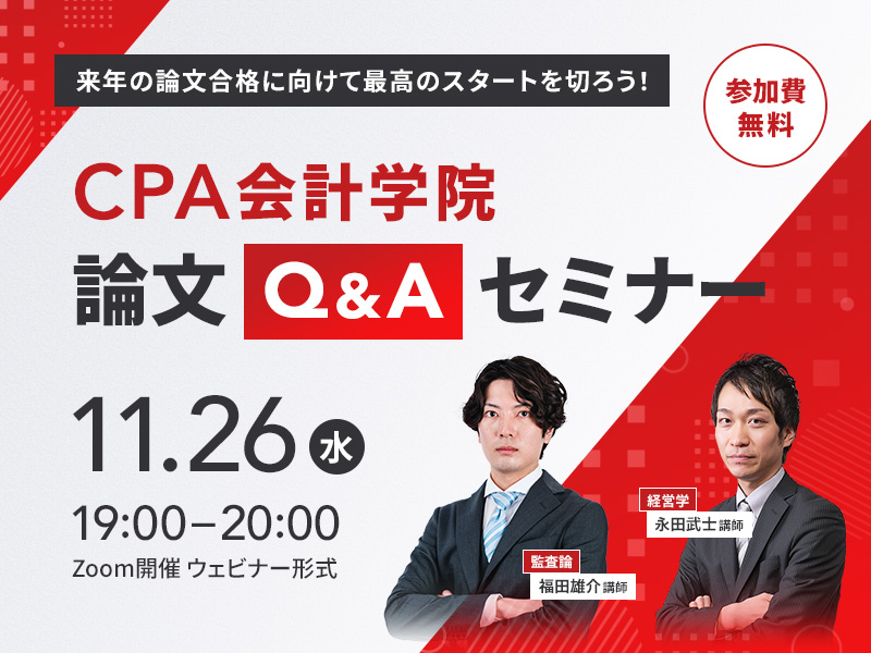 CPA会計学院が、来年の論文合格に向けて”好スタート”を切るためのお手伝いをさせていただきます!