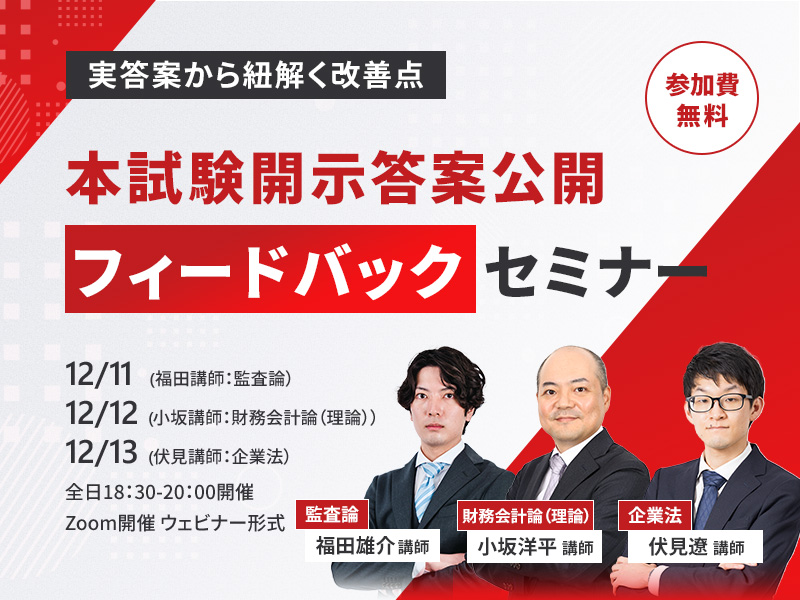 実際の公認会計士試験の開示答案を題材とし、講師が直接フィードバックを行う公開セミナーを開催いたします!